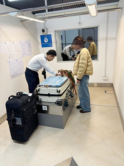 海關根據風險評估系統進行預警佈控,加強對來自日本的航班檢查。本月四日,關員在澳門國際機場入境旅客區,截獲四名年齡乎介三十八至五十六歲的內地人,在其隨身行李內共檢十萬零三千七百支未完稅香煙、四萬二千二百支電子煙,以及七百十一六支注射藥,市值合共約六十一萬澳門元。