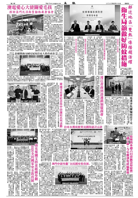 【特訊】4月15日中午,濠江青年商會會長陳仲崑、義務財務長陳楠燊、商務事務理事林汶龍及黃君皓一行四人蒞臨澳門連鎖加盟商會,雙方就推動本地知識產權經濟發展及深化會務合作進行友好交流。加盟商會副主席葉朝輝、副主席兼澳門特色老店服務專委會主任李子禹、副主席兼大灣區知識產權專項工作委員會主任林永然、秘書長許可立出席接待。