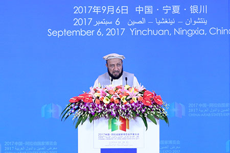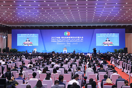 【中新社銀川9月6日電】(記者 李曉喻)2017中國—阿拉伯國家博覽會6日在寧夏銀川開幕。中國國家主席習近平致賀信。