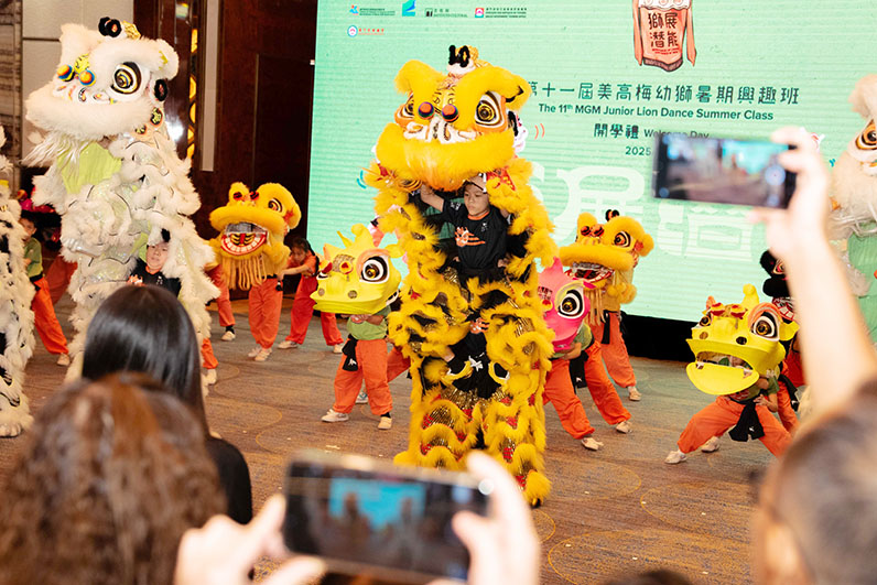 【特訊】「美高梅獅王爭霸2025年度盛事」頭炮活動 — 第十一屆「美高梅幼獅暑期興趣班」6日正式開課。今年興趣班反應熱烈,報名人數超出收生名額六倍,創下歷屆之冠。本屆興趣班由美高梅與麥旨樑龍獅體育會攜手合辦,並獲澳門特別行政區政府體育局、教育及青年發展局、文化局、旅遊局,以及澳門武術總會鼎力支持。入選的100名幼獅學員將於原媽閣屠場舊址展開為期七個星期的舞獅訓練,為嶺南醒獅培育新力軍,推動中華非遺的薪火相傳。