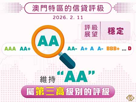 【特訊】惠譽國際評級有限公司(Fitch Ratings,下簡稱“惠譽")昨(11)日公佈維持澳門特區的“AA”長期本外幣發行人信貸評級,評級展望為“穩定”。