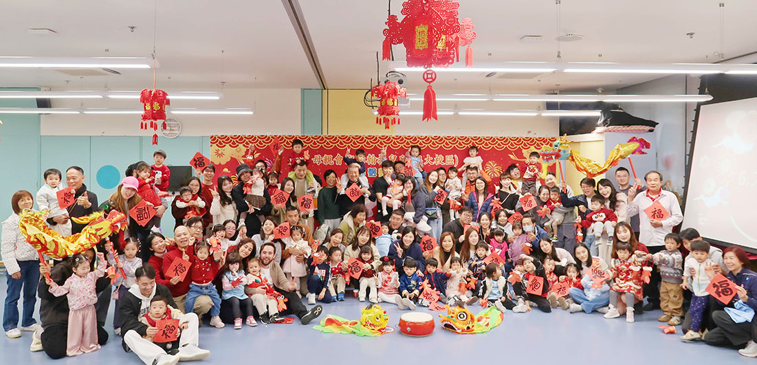 導師選用天然有機的食材,與幼兒一起製作七彩湯圓,寓意團團圓圓,如意吉祥,幼兒寓學習於玩樂;其中澳大校區更舉行了「馬蹄聲聲迎新春」親子活動,除了向幼兒介紹新年食物外,家長和幼兒一同舞獅,進行律動遊戲「萌寶過大年」、並以小組比賽形式進行摘「福」字的遊戲及完成親子勞作「年年有魚」,幼兒們一起舞龍舞獅、敲鑼打鼓,活動現場處處洋溢著濃厚的節日氣氛,場面溫馨熱鬧。