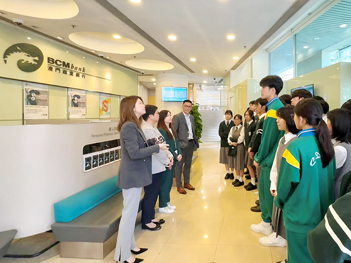 【特訊】為助力本澳學生深入了解銀行業發展趨勢及未來就業前景,澳門商業銀行於早前邀請聖若瑟教區中學第三校一眾高二學生及老師蒞臨澳門商業銀行總行進行《解構銀行業及職涯探索之旅》參訪活動,並獲該行職員熱情接待。活動透過實地參觀銀行運作及專題分享會,帶領學生多角度認識銀行業及其發展趨勢,為未來升學方向提供啟發並及早進行職涯規劃。