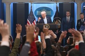 當天的記者會持續約80分鐘。美國國防部長赫格塞思、美軍參謀長聯席會議主席凱恩和中央情報局局長拉特克利夫陪同特朗普出席,並在會上通報了營救兩名美軍F-15戰機飛行員的情況。