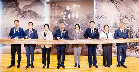 【特訊】由文化局與中國國家博物館聯合主辦、澳門藝術博物館執行的“山川響答——中國國家博物館藏明清山水畫展”,於昨日(4月24日)在澳門藝術博物館開幕。社會文化司司長柯嵐,中央人民政府駐澳門特別行政區聯絡辦公室副主任楊偉群,中國國家博物館黨委書記楊帆,文化局局長梁惠敏,旅遊局局長文綺華,澳門頤園書畫會會長李俊鳴、澳門日報副社長兼總經理溫能漢及文化局副局長蔡健龍主禮開幕儀式;社會文化司司長辦公室主任林媛,中央人民政府駐澳門特別行政區聯絡辦公室宣傳文體部副部長白冰,中國國家博物館館長辦公室主任楊拓,澳門頤園書畫會理事長、澳門水墨藝術學會副會長李德勝等觀禮。
