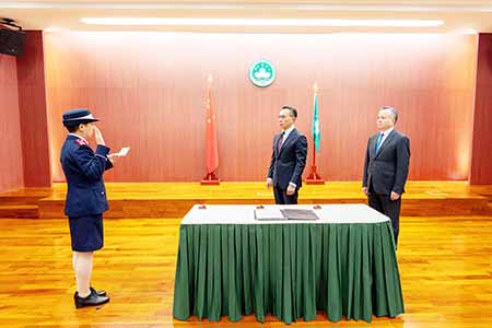 【特訊】五日上午在保安司司長辦公室舉行澳門海關助理關長就職儀式,儀式由保安司司長陳子勁主持,並在海關領導及一眾官員的見證下,吳嘉慧關務總長進行宣誓及簽署就職狀,就任為海關助理關長。