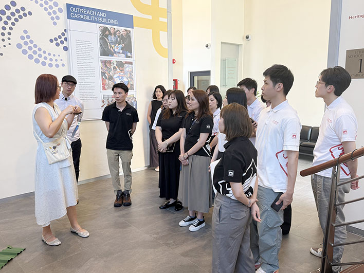 考察團重點參訪新加坡文化遺產保護中心(Heritage Conservation Centre, HCC),在中心副主任卓利洺、趙孝軒及高級經理劉佳玲帶領下,團員實地觀摩古蹟構件的修復流程、材料測試、環境監控及長期保存策略。協會會長吳芷慧向對方介紹本會歷史、成立宗旨及過往活動成果,雙方亦探討未來合作方向,包括安排兩地青少年互訪考察、實習及共同推廣文化項目,期望透過實務交流讓年輕一代更深刻理解彼此文化與生活風貌。