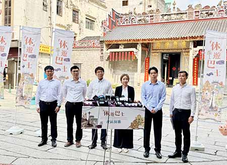 經濟及科技發展局、旅遊局、博彩監察協調局、交通事務局、治安警察局、市政署昨午在康公廟前地舉行「『休』遊巴士.社區探趣」發佈會。