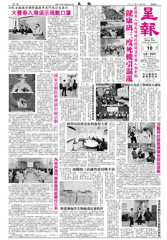 新型冠狀病毒感染應變協調中心表示,澳門健康碼於前天(八)日晚上約十時伺服器突然出現異常,導致無法生成健康碼,伺服器經重啟後,已回復正常運作,整個過程持續約十五分鐘,原因有待進一步了解。至昨日(九)日上午約七時三十五分,澳門健康碼系統再突然出現故障,應變協調中心公佈,經搶修後,於昨日早上十一時,澳門健康碼系統現已回復正常,造成是次故障原因正作進一步了解。