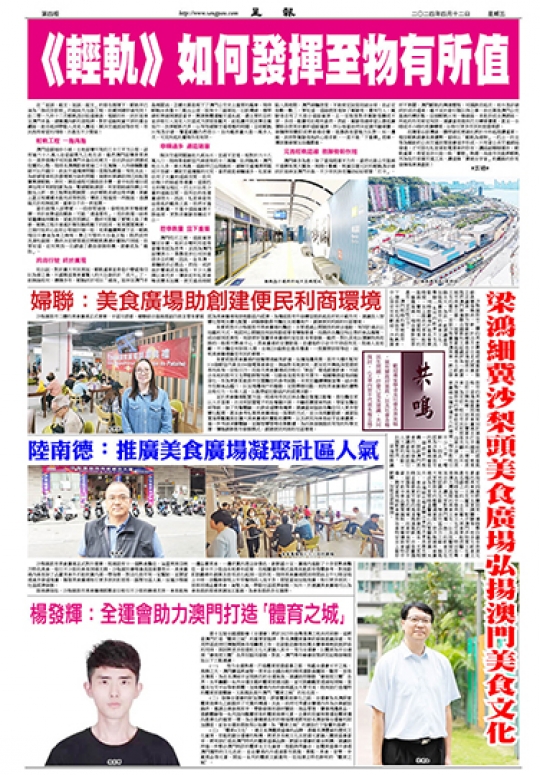 而隨著石排灣線、橫琴線和東線也將於今年起陸續通車,相信輕軌就會具備優勢,屆時以「輕軌為骨幹」,巴士、的士等為輔助的公共交通政策就會逐步形成。只有當公共交通網絡發達,才可弱化私家車和電單車的存在,讓路面暢順運作。輕軌通車,希望並非只是一股「嘗鮮」熱潮,而是市民能將輕軌列為出行首選交通工具,讓這條「貴絕全宇宙」的鐵路的作用發揮得淋漓盡致! *雲迪*
