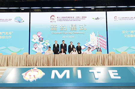 近一百二十個文旅相關機構和社團前天(二十六日)在旅博會場館內進行簽約儀式,推進澳門以及來自不同國家和地區業界之間的業務合作,簽訂涵蓋旅遊、大健康、潮玩IP、研學及文化等九個組別的合作項目。青海省人民政府副省長程基偉、中央人民政府駐澳門特別行政區聯絡辦公室經濟部副部長楊全州、旅遊局局長文綺華及澳門旅行社協會會長劉雅煌見證相關簽約儀式。