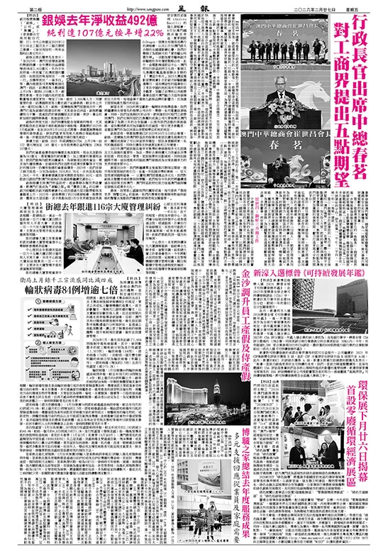 第三、踐行社會責任,助力民生改善。隨著粵港澳大灣區建設縱深推進,橫琴粵澳深度合作區各項政策與項目加快落地,工商界要主動配合國家「十五五」規劃與澳門「三五」規劃,善用前所未有的廣闊發展空間,把握機遇,勇於創新,定能推動澳門經濟社會實現高品質可持續發展。