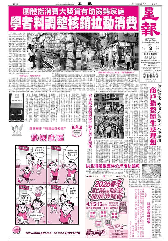 【特訊】“二零二六社區消費大獎賞”將於本周五起推出。有市民認為此次活動核銷電子優惠時間延長,有助吸引居民留澳消費;澳門發展策略研究中心秘書長陳志峰表示,活動時間處於消費淡季,認為推出時間合適,相信有助進一步帶動中小企的經營。澳門特殊奧運會執行總監蕭宇康稱,消費大獎賞幫補弱勢家庭,推動他們社區消費。