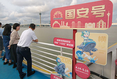 活動打造「陸上展覽+海上宣傳」聯動模式,將總體國家安全觀融入海上實景與互動實踐。嘉賓乘坐「國安號」遊船沿十字門水道環澳門海域航行,通過沉浸式場景化的體驗設計,呈現國家安全教育。深合區將以更接地氣的形式,將國安理念融入日常生活,並增強琴澳兩地共同維護國家主權、安全,發展利益的使命感與責任感匯聚維護國家安全的強大合力。而為進一步深化國家安全宣傳教育,澳門、橫琴、珠海三地聯動於四月十五日至二十日每晚八時至十一時,透過共同點亮城市地標的方式推廣“全民國家安全教育日。