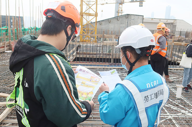 勞工局製作了多款針對不同工種的宣傳品和參考資料,包括建築工地工作安全指引小冊子、以及棚架和吊運安全主題相關海報等。