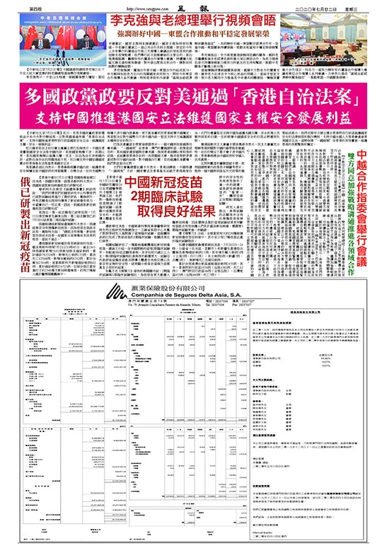 【中新社北京7月21日電】中國國務院總理李克強21日下午在人民大會堂應約同老撾總理通倫舉行視頻會晤。