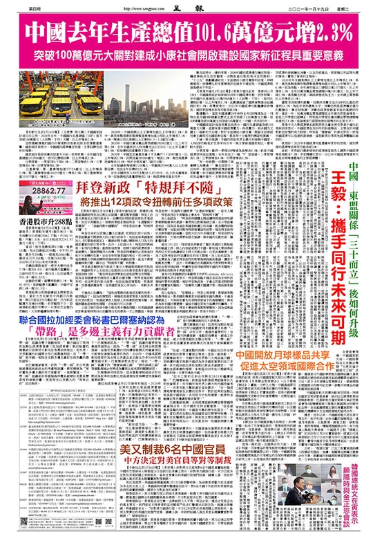 【中新社北京1月18日電】(王恩博 張文暉)中國國家統計局18日公佈,2020年全年,中國國內生產總值(GDP)首次突破100萬億元(人民幣,下同)大關,比上年增長2.3%。