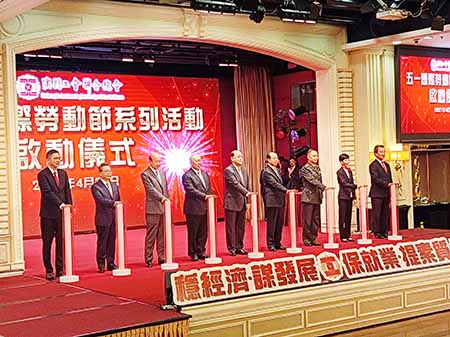 【特訊】工聯總會昨日舉辦五一國際勞動節慶祝大會。行政長官賀一誠致辭時表示,政府將繼續採取綜合措施,為勞動者創造良好環境,保障僱員合法權益,維護本地居民優先就業的權利,嚴格落實外僱退場機制;工聯會長何雪卿致辭稱,部分行業仍存在失業、放無薪假及減薪等現象,期望政府繼續優先保障本地人就業,完善帶津培訓及就業轉介。