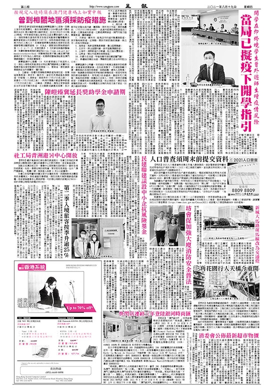 【特訊】還有約兩星期就開學,教青局指出,不少師生於暑假期間曾經外遊,現正陸續從不同地區回澳,可能會提高開學風險,當局已為學校擬定疫下開學指引,並爭取如期開學和面授課程,但若存在高風險和不穩定因素,不排除會延遲開學。另外,本澳有三千多名跨境學生在內地居住,當局提醒他們儘快在開學前十四天返回澳門、珠海或中山居住地。