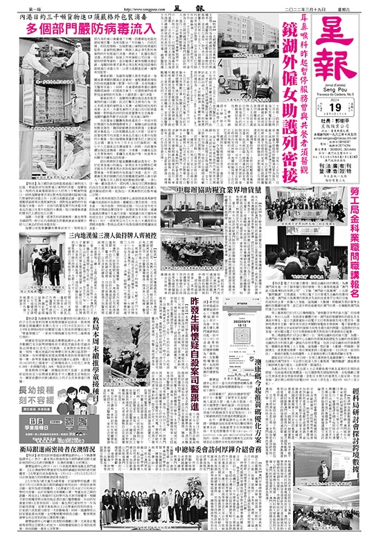 【特訊】一名鏡湖醫院耳鼻喉科女護士助理,被列為南屏鎮確診病例的密切接觸者,鏡湖醫院由昨日起暫停耳鼻喉科的服務,直至另行通知,院方表示,目前受影響人數約有七十至九十人,但相關病人均沒有迫切求診需要,而全院員工已安排作核酸檢測;由於該名護士助理於三月十四 、十五及十七日曾回醫院上班,當局為上述日期到鏡湖耳鼻喉門診就診的病人,進行一次免費核酸檢測。