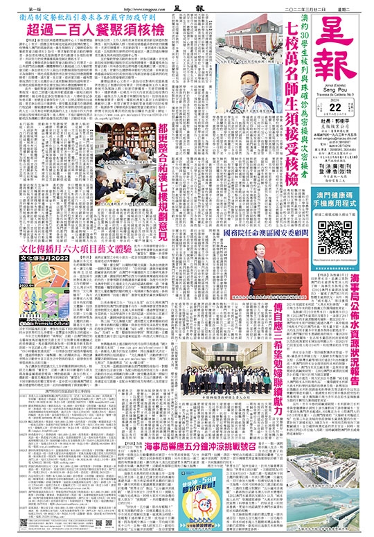 珠海出現確診病例,本澳約有三十名學生被列為密切接觸者或次密切接觸者,其中,聖德蘭學校一名學童,青洲中學一名學童,福建學校兩名學童,列為密切接觸者。根據衛生局相關指引,相關人士分別需要到高頂公共衛生臨床中心,作醫學觀察,以及作「七加七」自我健康管理,而同校的其餘學生,為安全起見,和釋除家長疑慮,教青局已即時和衛生部門溝通,確保有足夠的核酸檢測能力為學生提供服務。