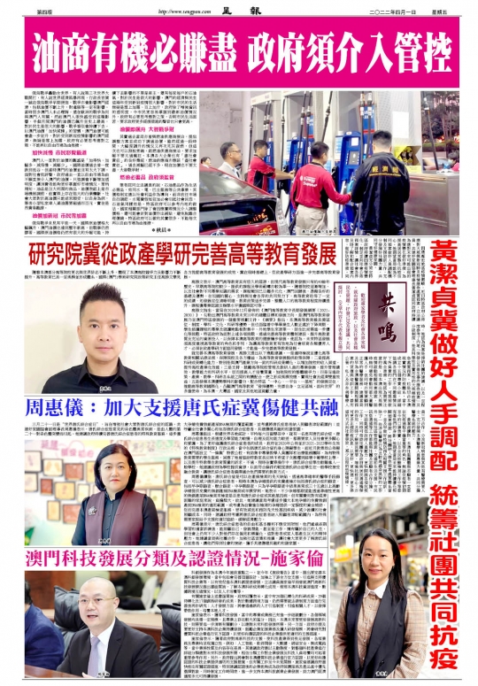 俄烏戰爭未見有平息一天,國際原油價格大幅飆升,澳門油價也達到歷年新高,但戰事仍然膠著,國際原油價格仍然有很大的升幅可能,持續下去影響的不單是車主,還有每家每戶的石油氣,對於民生是很大的影響。澳門的經濟與民生這兩年受到新冠疫情很大影響,對於市民的生活無疑是雪上加霜、百上加斤,政府除了增強資訊的透明度,令市民更容易掌握到最新油價情況外,政府有必要思考應對之策,否則市民生活困苦,要求政府更多經援措施的聲音也只會更高。