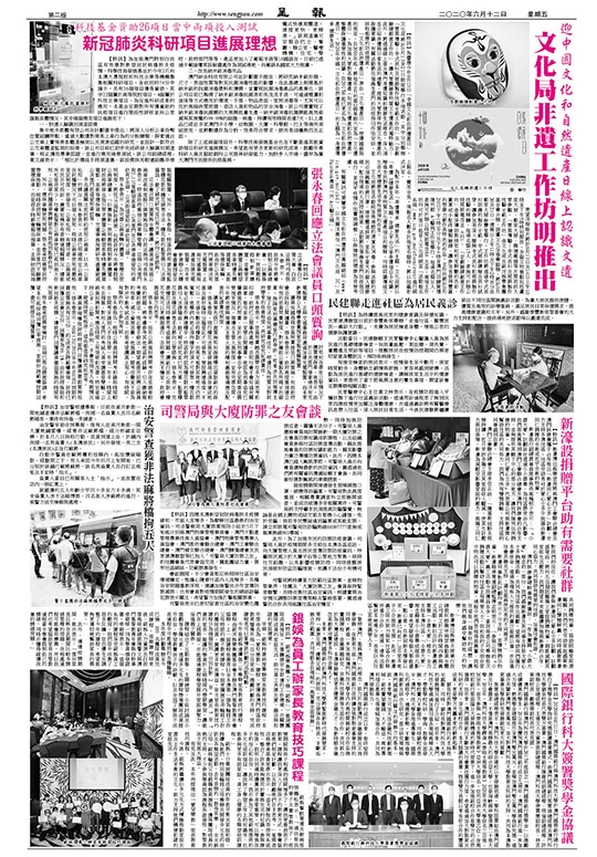 【特訊】為響應今年6月13日「中國文化和自然遺產日」,文化局將於6月13至21日期間舉行多項活動,其中分別舉辦 「雲裳傳藝—中式長衫及裙褂製作技藝示範工作坊」及「京劇臉譜創意工作坊」,讓大眾體驗非物質文化遺產的獨特魅力;此外,將透過線上普及澳門非遺知識和健康生活理念,深入淺出介紹非遺與日常生活的連繫,提高大眾對非物質文化遺產的保護意識。有關活動將依偱衛生部門的防疫指引作出安排,並採取相應的防疫措施。