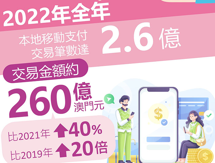 本澳移動支付的使用及受理面持續擴大,在帶動數字金融發展的同時,亦充分發揮對澳門經濟發展的促進作用。2022年,本地移動支付交易達2.6億筆,金額再創新高達260億澳門元,較2021年增加約四成,較2019年更大幅增長了超過二十倍,金管局相信,與政府推出多輪電子消費優惠及消費嘉年華帶動有關,而隨著支付市場不斷擴大,在良性競爭下,現時移動支付交易手續費對比疫情前下調約二成,當局亦推動機構優化支付系統安全和穩健性。