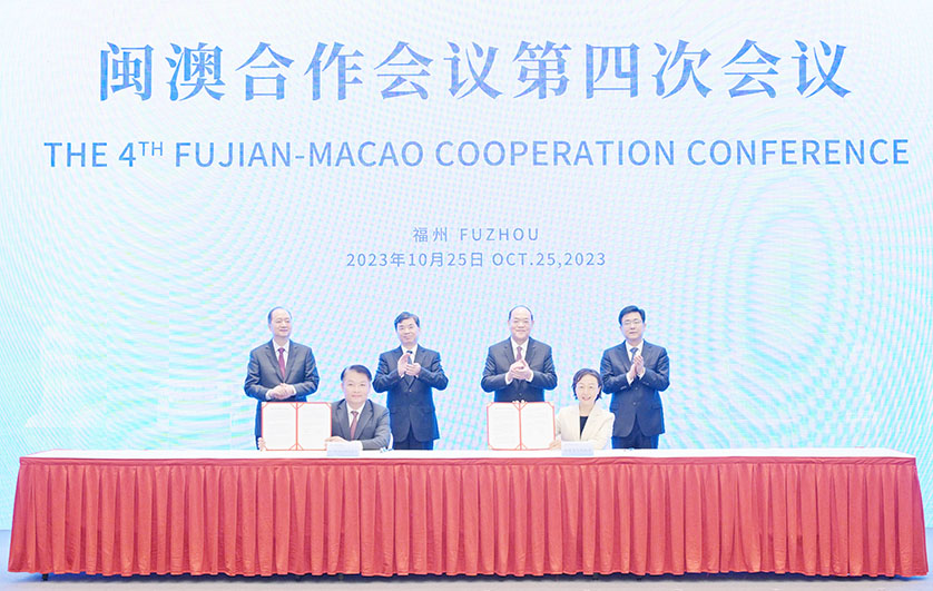 會議上,通報了閩澳第三次合作會議以來有關工作推進情況,宣佈了閩澳合作會議第四次會議重點推進領域。隨後,在周祖翼、賀一誠、鄭新聰及趙龍見證下,福建省委常委、常務副省長郭寧寧與經濟財政司司長李偉農代表雙方簽署《閩澳合作會議第四次會議合作備忘錄》。接着,一眾領導還見證了澳門貿易投資促進局與福建省商務廳簽署《關於在攜手融入共建「一帶一路」建設中深化閩澳經貿合作的協議》、澳門特別行政區政府衛生局與福建省衛生健康委員會簽署《閩澳醫療衛生交流合作備忘錄》、澳門特別行政區政府文化局與福建省文化和旅遊廳簽署《關於拓展閩澳文化交流合作的協定》,以及澳門特別行政區政府旅遊局與福建省文化和旅遊廳簽署《關於拓展閩澳旅遊合作的協議》。