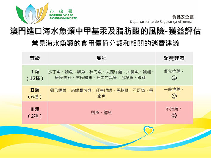 因此食用有關食品可為健康帶來益處,同時亦伴隨潛在風險,故此市政署進行了有關科學調研,評估本澳巿民食用進口海水魚的健康獲益及食安風險,給予市民相應的膳食建議,讓消費者在食用時更好地在兩者之間作判斷。