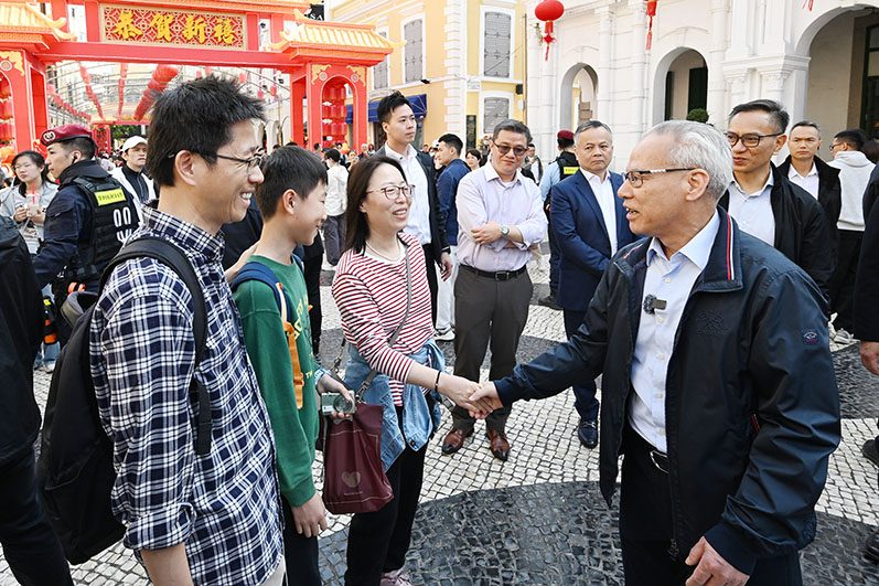 【特訊】行政長官岑浩輝於於2月20日農曆大年初四走訪本澳多個社區,實地瞭解新春期間市面人流及商戶經營狀況。岑浩輝強調,特區政府致力維護社會秩序,保障市民和旅客的生命財產安全,同時着力協助中小企與時俱進提質升級,攜手推動社區經濟穩步增長。而在大年初一,岑浩輝先後視察仁伯爵綜合醫院、部份公共服務機構、保安範疇設施及橫琴口岸,瞭解農曆新年期間各項服務、警務運作及通關情況,並向節假日期間堅守崗位的工作人員致以新春祝福,勉勵大家同心協力,確保居民及旅客在澳門平安歡度新春佳節。