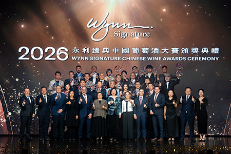 【特訊】由永利渡假村旗下精緻體驗品牌「Wynn Signature永利臻典」全力打造的「2026 永利臻典——中國葡萄酒大賽」頒獎典禮,在澳門特別行政區政府旅遊局、澳門特別行政區政府招商投資促進局,及澳門特別行政區政府文化局的支持下,於4月24日晚在永利皇宮盛大舉行。逾二百位葡萄酒專家、中國酒莊代表、業界人士、國際媒體和葡萄酒愛好者齊聚澳門,共同見證 36 項年度最佳獎項的揭曉和加冕。本屆大賽由「紫晶莊園小芒森甜白 2024」脫穎而出,奪得本年度「年度最佳中國葡萄酒」最高榮譽。