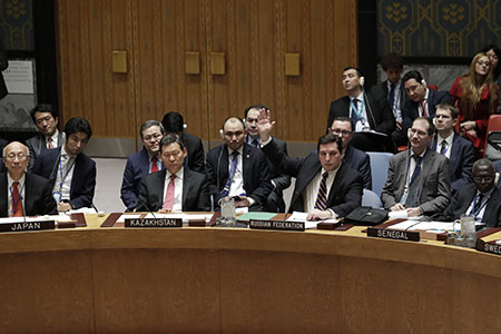據報道,聯合國安理會12日就英美法三國起草的叙利亞化學武器問題決議草案進行表決。表決結果為10票贊成、2票反對、3票棄權,俄羅斯和玻利維亞投了反對票,中國、哈薩克斯坦、埃塞俄比亞投了棄權票。因有安理會常任理事國投票反對,草案未獲通過。