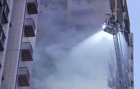 【特訊】筷子基快富樓社屋十七樓發生火警,造成一死五傷慘劇,火警在昨日清晨發生,火勢一度十分猛烈,濃煙沖天,有居民聽到爆炸聲響慌忙逃生,消防接報後派出多輛消防車及救護車前往救援,消防員利用雲梯車向火警單位灌救,火警撲滅後消防在單位內發現一具燒焦的屍體,死者是一名七十四歲的男子,另有五人因不適送院治理,大廈約有一百八十名住客分別疏散到大廈的天台及街上,起火原因有待調查。