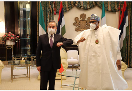 【中新社北京1月6日電】當地時間1月5日,尼日利亞總統布哈里在阿布賈會見對尼進行正式訪問的中國國務委員兼外長王毅。
