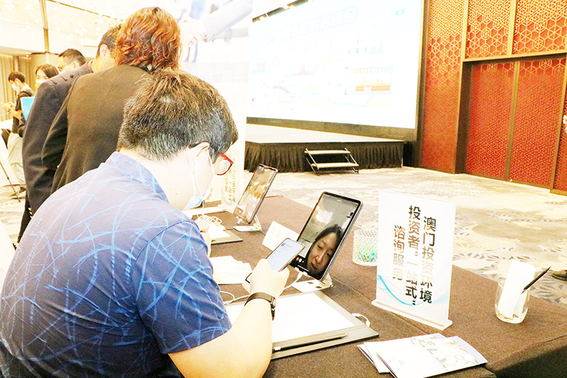 洽談會上,貿促局代表向與會者推介澳門投資環境及貿促局服務。場內澳門企業展示產品並設試飲試食,同時安排在澳營商的視像諮詢服務,為有需要的客商提供線上即時解答。場內合共接獲16宗線上線下投資者「一站式」服務查詢,內容涉及在澳開設資產管理、紅酒進口、旅行社、舉辦大型活動、化工材料加工、進口壓片機、絲綢貿易等業務,以及澳門營商環境等。