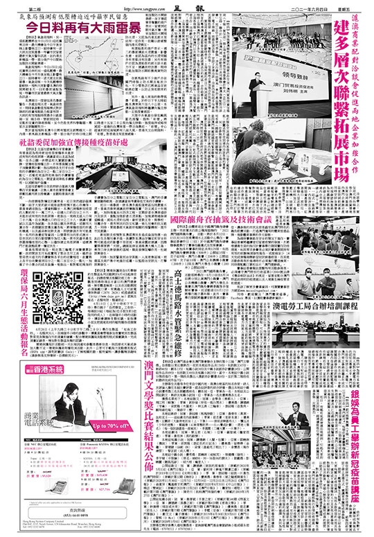 澳門特別行政區政府於內地有序開展系列「澳門周」,其中「上海澳門周」於昨日(3日)起至7日在上海市黃浦區外灘源‧圓明園路步行街一連五日展開,以「禮盒」形式展現澳門多元魅力。貿促局是次組織一行22人的澳門經貿代表團,以及組織和安排了近40家澳門製造、澳門品牌、代理葡語國家產品的澳門企業展銷及展示商品,產品種類多元,包括手信餅食、咖啡、紅茶、酒類、橄欖油、果醬、罐頭沙甸魚、咖哩膏、服裝及保健食品等,多角度助力推廣澳門企業,提升品牌知名度。此外,由旅遊局及貿促局主辦的「上海澳門周-澳門旅遊及會展業推介會」將於6月4日上午10時舉行。