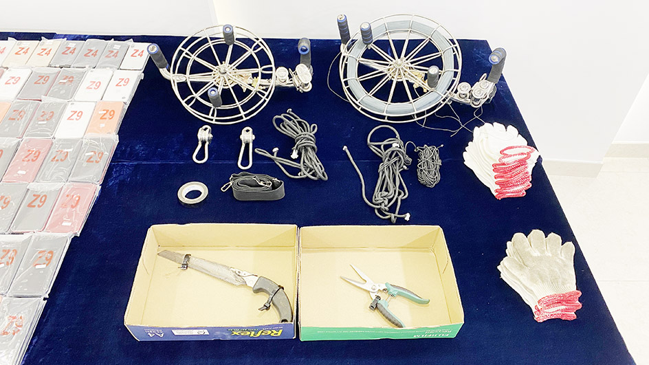 海關在行動之中,合共起出三百零八部舊的智能手機,價值約一百零七萬澳門元;同時起出手套、滑輪、及繩索等犯案工具。