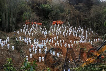截至3月28日12時,搜尋人員累計出動15640人次,對核心區和周邊重點區域進行反復搜索,累計搜索面積約37萬平方米,找到飛機殘骸和碎片36001件。在核心區外圍區域,除部署拉網式人工搜索外,還組織了5個無人機航拍搜索組,累計搜索面積約954.6萬平方米。