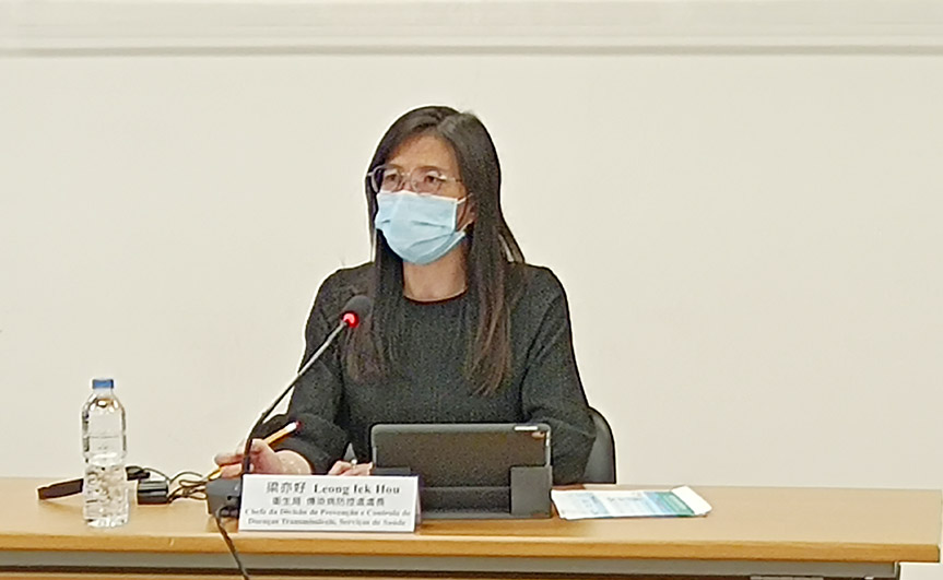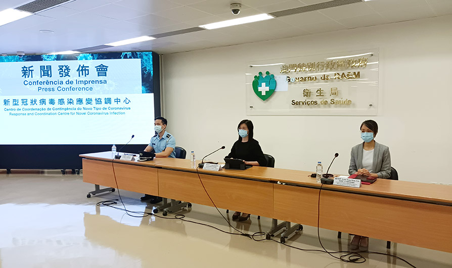 新型冠狀病毒感染應變協調中心昨日舉行記者會,衛生局疾病預防及控制中心傳染病防控處處長梁亦好、治安警察局公共關係處處長李德輝、旅遊局公共關係處處長藍同好分別介紹本澳及鄰近地區整體防疫情況。