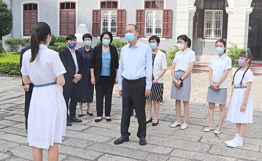在聽取聖羅撒女子中學中文部校監郭小麗、校長簡穗川、教區天主教教育委員會辦公室主任陳庭鋒、學生代表,教業中學校董會主席何敬麟、副主席梁勵、校長賀誠的情況介紹後,鄭新聰主任表示,行政長官和特區政府高度重視教育工作,為澳門教育發展創造了良好條件。他充分肯定廣大教育工作者為澳門「一國兩制」成功實踐作出的重要貢獻;充分肯定聖羅撒女子中學中文部用愛澆灌呵護學生健康成長,重視傳承優秀中華文化、注重學生全面發展、為社會培養了大批新時代女性;充分肯定教業中學堅持「家國情懷、傳統根基、世界眼光」辦學理念,堅持守正創新,積極探索本地教育國際化和國際教育當地語系化的辦學之路,為國家和澳門培養了大批優秀人才。他勉勵學校及廣大教師:一是弘揚優良傳統,深入開展愛國擁黨教育。要深入學習貫徹習近平總書記在慶祝香港回歸祖國25周年大會暨香港特別行政區第六屆政府就職典禮上的重要講話精神,落實憲法規定的憲制責任,弘揚愛國愛澳優良傳統,廣泛深入開展愛國主義教育,引導學生自覺尊重和維護國家根本制度,瞭解、認同、擁護中國共產黨領導,使國家意識和愛國精神在青少年心中深深紮根,為國家、為澳門培養更多堪當民族復興重任的時代新人。二是提高教育品質,促進學生健康成長。積極探索教育改革發展道路,拓展與內地教育合作交流的廣度與深度,不斷提升辦學、管理和育人水準。教育是一門「仁而愛人」的事業,要懷著仁愛之心去澆灌學生心靈,特別要高度關注學生身心健康,讓每一個學生都健康成長,都有人生出彩的機會。三是加強教師隊伍建設,提升教師幸福感和成就感。要加強師德師風建設,營造良好團隊氛圍。要支持教師專業發展,不斷提高業務能力。要根據疫情新形勢新變化,主動關心教師的工作、生活情況,説明他們解決實際困難,紓緩壓力,以更好的精神狀態投入工作。