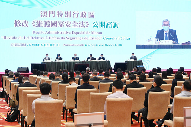 修改《維護國家安全法》公開諮詢期由八月二十二日至十月五日,期間共舉行八場諮詢會,其中三場業界諮詢專場及兩場公眾諮詢會已於早前舉行。最後一場公眾諮詢會定於本月十六日晚上七時半舉行,地點為中國與葡語國家商貿合作服務平台綜合體會議廳。有意參加的居民可於本月十三日下午五時前,經專題網頁或致電報名。除參加諮詢會外,公眾亦可通過信函、電話、傳真或電子方式對諮詢文本內容提出意見或建議。而諮詢文本除可登入專題網頁下載外,亦可在諮詢會現場、保安司司長辦公室、司法警察局、公共行政大樓、政府綜合服務大樓、中區市民服務中心及離島區市民服務中心等地點索取。