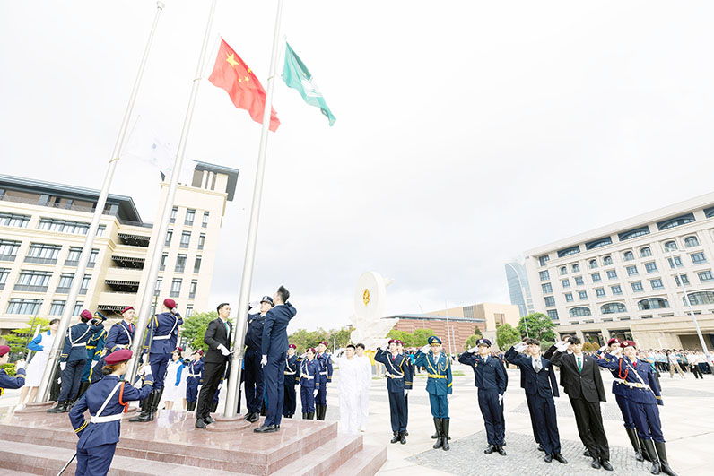 澳大校長宋永華致辭時表示,聯合升旗活動不僅展示了各高校之間的團結與合作,也彰顯了澳門學界對教育事業的共同努力和承擔。這份誠摯的祝福是澳門高校獻給祖國和特區政府一份特殊的禮物。隨著澳門經濟快速增長,各高校的教學科研水平顯著提升,辦學質量和水平受到國際廣泛認可。澳門高等教育的發展也為澳門經濟社會發展提供了重要保障和支撐,為澳門“一中心”、“一平台”、“一基地”建設不斷添磚加瓦。澳門各高校齊心合力,團結一致,在維持澳門經濟社會長期繁榮穩定發展發揮了重要作用。