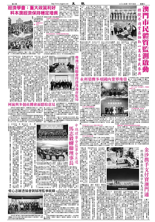國家主席習近平上月訪澳期間發表重要講話,對澳門提出“三點期許”和“四點希望”,令人備受鼓舞,意義深遠,未來可期。今年1月1日開始,珠海推出“一周一行”、橫琴實施“一簽多行”赴澳旅遊新政策,推動澳珠、澳琴聯動、互動,將吸引更多珠海人到澳門購物消費,推動深合區的發展,也有助進一步激活澳門零售、餐飲等旅綜合遊休閒消費。此外,2025年我國將實施更加積極的財政政策和適度寬松的貨幣政策,市場預期內地將進一步降準、降息,維持低利率、寬流動性的環境,為應對外圍不確定性和穩定經濟增長創造條件。對本澳經濟發展也有積極正面作用。根據大摩和里昂等機構對澳門2025年的最新預測,今年澳門博彩毛收入將按年溫和增長4.0%至6.0%。而本會早前經綜合分析及研判,本澳2025年全年GDP預測按年實質增長5.0%左右,料可保持經濟穩定增長。