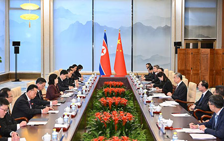 王毅表示,中朝兩國是山水相連的友好鄰邦。兩黨兩國老一輩領導人親手締造、精心培育的中朝傳統友誼是雙方共同的寶貴財富。維護好、鞏固好、發展好中朝關係始終是中國黨和政府堅定不移的戰略方針。本月初,習近平總書記同金正恩總書記舉行歷史性會晤並達成重要共識,為中朝關係發展指明了方向,規劃了藍圖。我們的職責就是貫徹落實好兩黨兩國最高領導人達成的重要共識,加強戰略溝通,密切交往合作,更好增進兩國人民福祉,共同促進地區和平與發展。