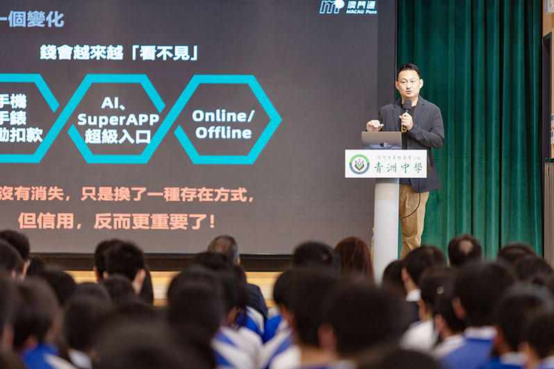在互動交流環節,學生們踴躍提問,圍繞個人發展及如何參與本地金融科技創新、提升信用與科技素養的實際途徑、數位支付普及下的長者關懷,以及個人資料安全等議題。主講嘉賓回應指出,澳門正逐步推動產學合作與金融素養教育,鼓勵青年主動接觸真實場景;並勉勵同學們保持對新技術的敏銳觸覺與持續學習的熱情,在快速變遷的金融科技環境中,應兼具技術能力與社會價值創造力。