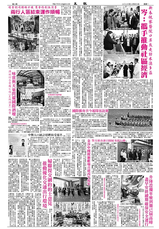 農曆新年行人專用區設置期間,經濟及科技發展局每日派員到區內巡查,實地了解行人專用區的實施情況、聽取公眾意見、掌握區內外最新人流、交通及衛生情況等,以即時向相關部門反映以及時作出處理,確保各項安排運作暢順。政府跨部門工作小組感謝區內居民、學校及商戶的支持及配合,在各方緊密合作下,農曆新年行人專用區各項工作順利執行,人流及交通分流措施有效。