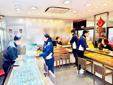 【特訊】因應鄰近地區近日接連發生以“金包銀”假冒足金飾品進行詐騙的案件,為防範相關犯罪手法蔓延至本澳,保障從事黃金回收及當押業務商戶免受損失,司法警察局社區警務及公共關係處於2026年2月23日至25日期間,派員走訪本澳各區相關商戶展開專項防罪宣傳行動,加強業界對新型詐騙手法的認知與警覺性。是次宣傳共走訪約300間珠寶行及押店。