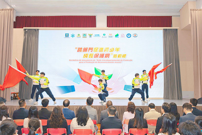 活動由治安警少年團、司警局滅罪小先鋒及高美士中葡中學學生分別帶來充滿活力與團隊精神的舞旗、醒獅及花式跳繩表演,象徵著澳門青年新生力量在社會各界的守護與關懷下茁壯成長,展現各部門與社會各界齊心為青少年共建安全和諧社會的決心。
