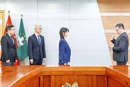 【特訊】第6/2026號行政法規《財政局的組織及運作》於三月廿四日正式生效,標誌着財政局正式完成架構重組。透過是次重組,特區政府對財政局的組織架構與人員編制進行精簡與優化,理順職能分工,旨在提升財政治理、強化行政效能,並為財稅法律的有效執行提供更穩健的制度保障。在經濟財政司司長戴建業監誓、經濟財政司司長辦公室主任羅志輝見證下,財政局局長何燕梅及副局長郭日海亦於廿六日重新宣誓就職。